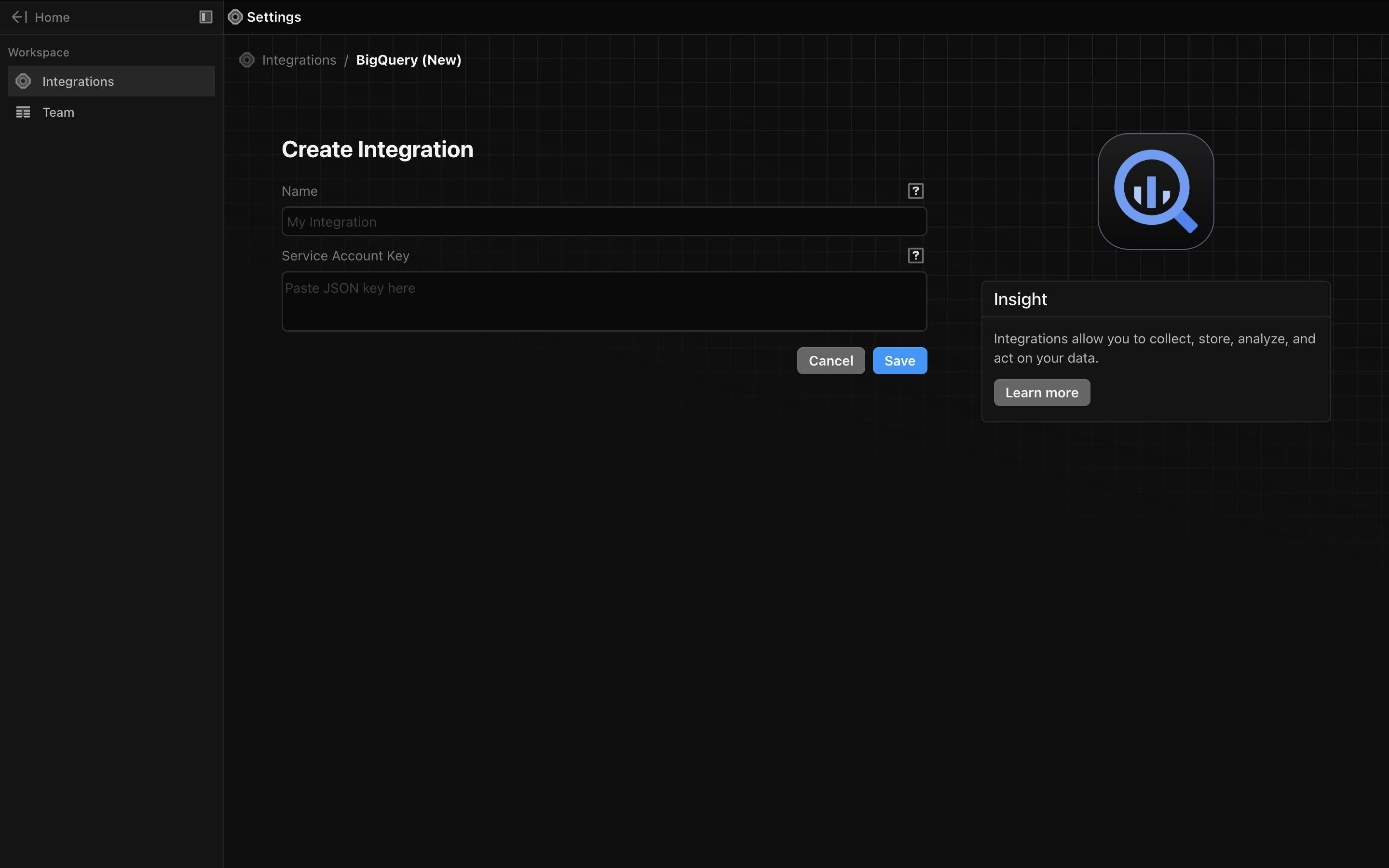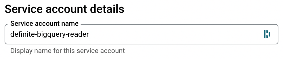 - This will create and download a JSON key (.json) used by Definite to authenticate as the service account user.