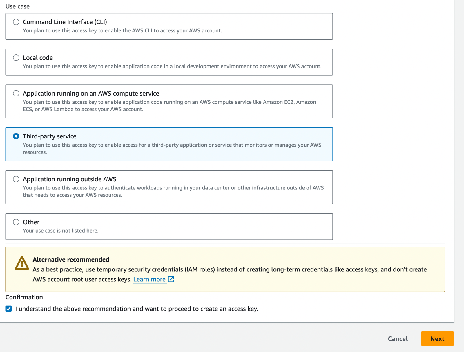 The next screen should show both your Access Key and your Secret Access Key. Make sure to copy these credentials to a secure location. This is the only time these credentials will be shown.